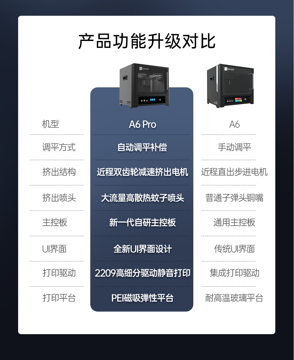 A6經(jīng)典,是對(duì)極光創(chuàng)新十多年來(lái)對(duì)3D打印機(jī)精益求精的精準(zhǔn)呈現(xiàn),而A6PRO則是極光創(chuàng)新對(duì)3D打印技術(shù)未來(lái)的全新超越。